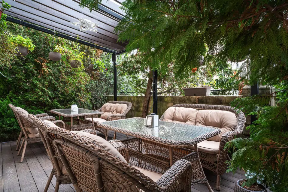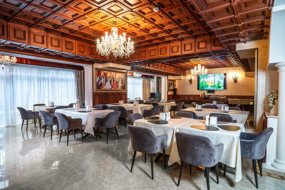 На территории работает ресторан "Александр" и летняя терраса у бассейна